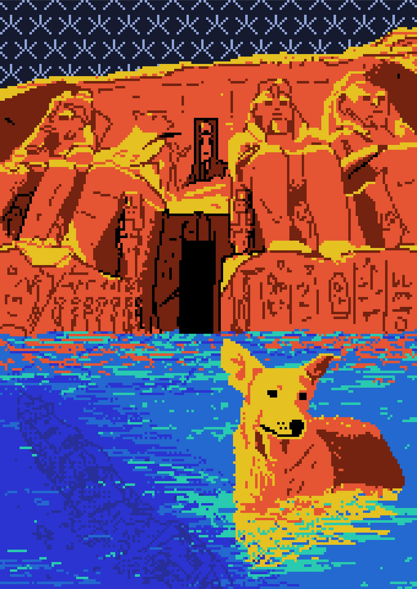 Some new pixel art and this time the pixels are smaller! I think I am done with these for a while - they are so slow and tedious! Things you can find in this image include: The wreck of the SS Thistlegorm, a Dahab beach dog, Abu Simbel, and stars from the ceiling of the Tomb of Seti I.